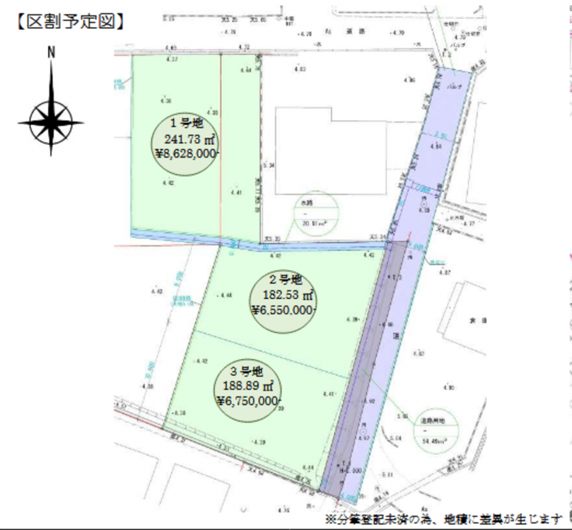 前面道路は公道に面しており、現況は更地。