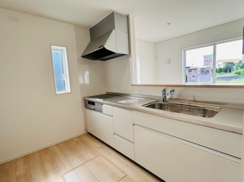 - ルーフバルコニー、システムキッチン、カウンターキッチン、IHクッキングヒーター、浴室乾燥機、モニタ付インターホン、駐車場2台分、駐車場3台分、床下収納、トイレ2箇所、ディンプルキー、浄水器、人感センサー付照明、火災警報器(報知機)